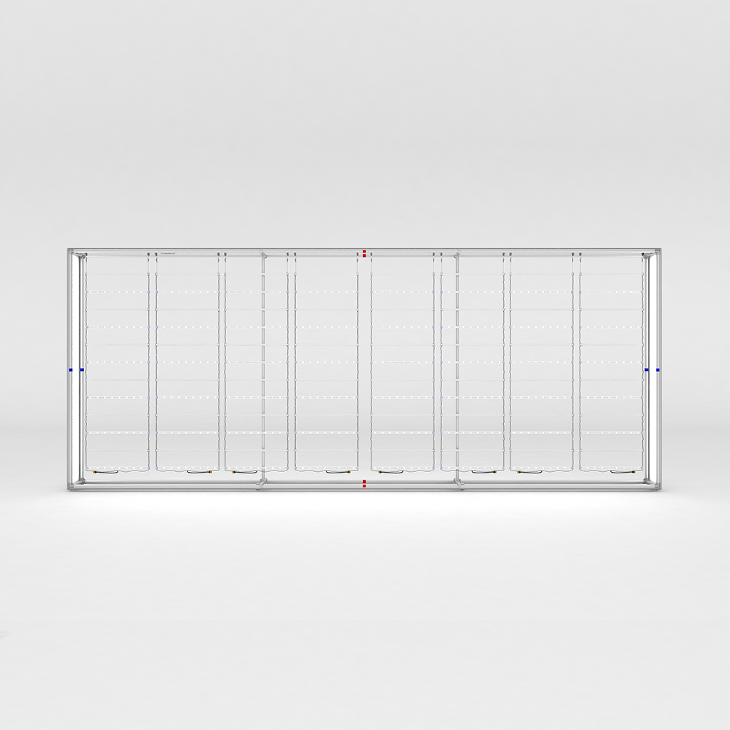 - Set of single or double-sided backlit graphic prints – a vibrant, recyclable and wrinkle-resistant polyester stretch fabric with sewn-in silicone edge insert.